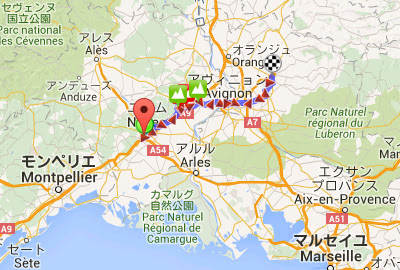 カルパントラでは2泊します。スーパーが閉まってしまうので、チェックイン前に食料調達。荷台は限界でした。 革命記念日のツール・ド・フランス第12ステージ。シングルの部屋がとれず贅沢にも2ベッドルーム。中庭も専有できました。 |